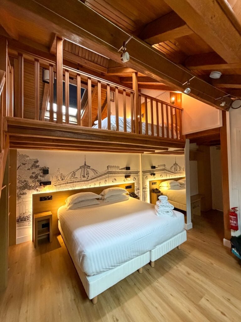 We booked the Studio Quadruple, which has a loft setup: my husband and I had the queen bed on the main level and the boys shared the full bed in the loft upstairs.