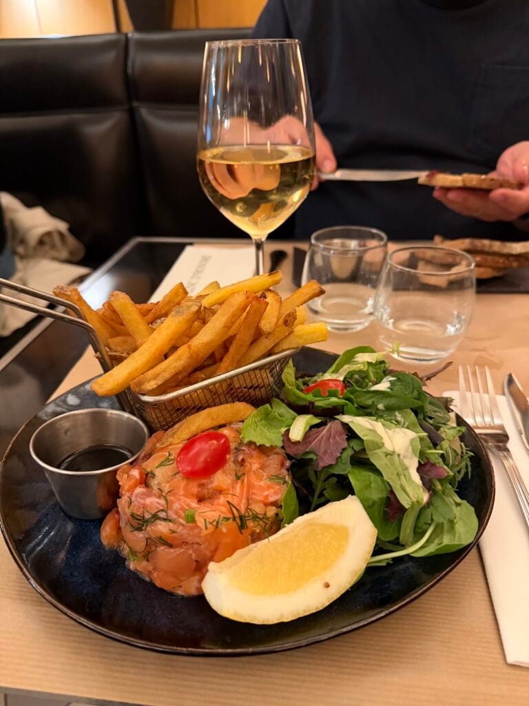 I had the salmon tartare and it was genuinely good. My older son had croque monsieur with fries, my husband had foie gras, and my youngest who announced he was “not hungry” ate half our fries, an entire bread basket, and then ordered creme brulee. Every time.