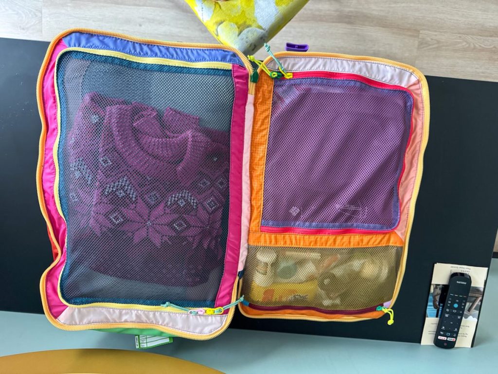 It also had lots of zippered compartments (perfect for packing cubes) and I kept finding hidden zippered areas throughout my trip.